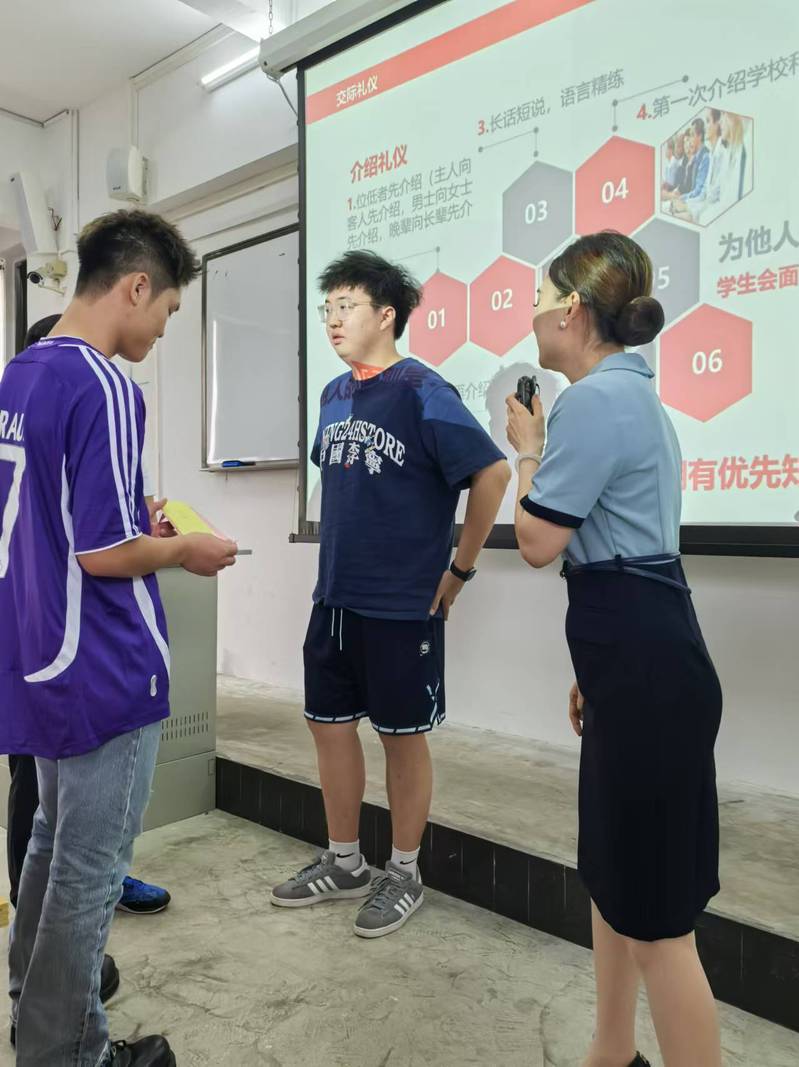9 月13 日上午,礼仪培训师曾碧玲带来精彩的大学生礼仪讲座。曾碧玲通过现场互动,让同学们了解实用社交礼仪和沟通技巧。