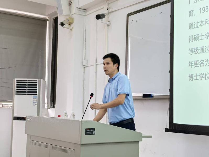 9 月 12 日下午,国际学院直属党支部书记何雄卫以“校史校情教育”为主题,在博学楼 805 为同学们讲授了精彩的开学第一课。