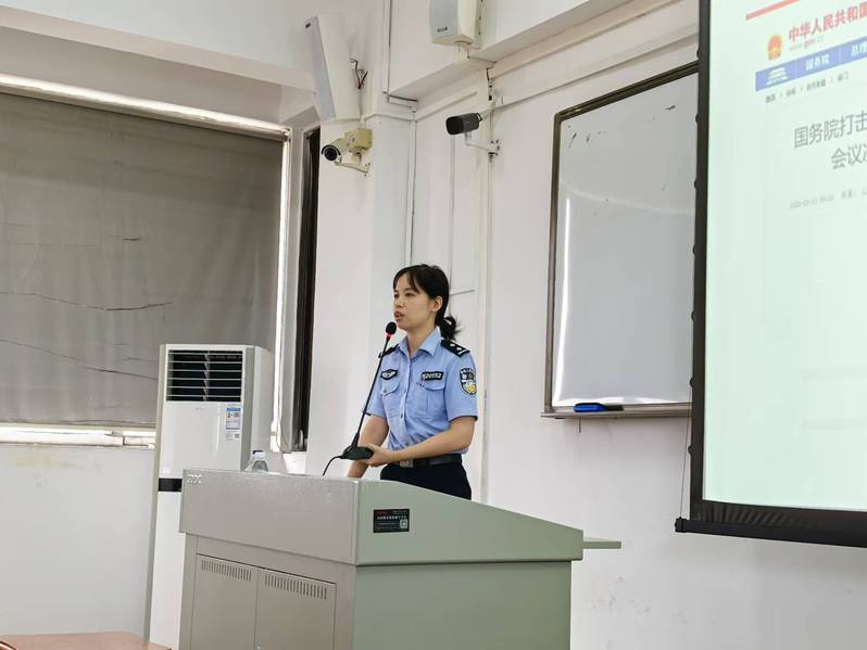 9 月13 日下午,社区民警唐警官为学生开展一场大学生安全教育专题讲座。唐警官通过真实案例和宣传短片多维度讲述了财产安全、网络安全、消防安全等重要性以及重点如何防诈骗、反诈骗。