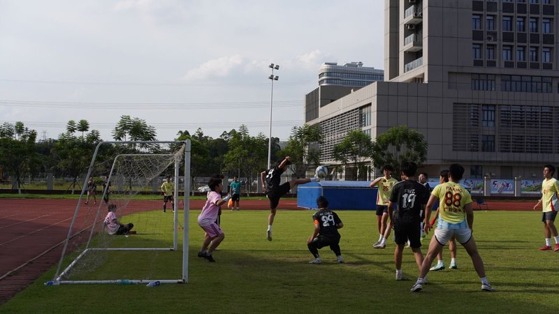 上半场第20分钟,我院再次掀起进攻高潮。69号队员钟宁观察到对方防守阵型的空当,他超远距离吊射,足球越过对方门将的头顶,迅速下坠进门,我院再下一城,比分2:0!这脚精彩的吊门进球,让现场观众再次沸腾,大家纷纷为钟宁的出色表现鼓掌喝彩,赞叹声不绝于耳。