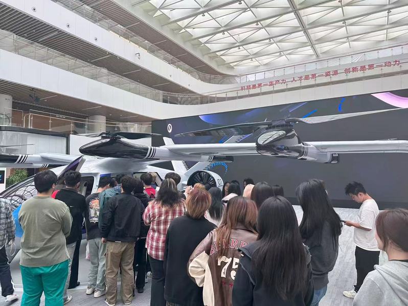 在广汽集团展厅,讲解员详细介绍了各车型的核心性能与市场定位,从家用轿车到高端SUV,全面展现广汽在传统与新能源领域的产品布局。尤为引人注目的是低空飞行器展示区,这款融合汽车与航空技术的创新产品,不仅具备垂直起降能力,还可实现短途低空通勤,其智能化控制系统与安全设计让学生们近距离触摸到 “未来出行” 的新型座驾,深刻体会到广汽跨界创新的时代战略。