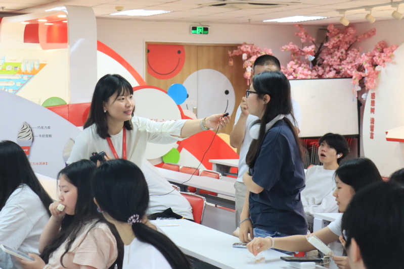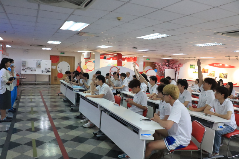 在互动问答环节,同学们踊跃抢答,展现出扎实的听课效果与浓厚的学习热情。活动尾声,企业贴心准备了明治新品雪糕供大家品鉴,为这场“色香味”俱全的实践课画上甜蜜句号。